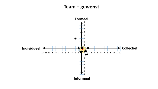 We hebben de deelnemers aan ons onderzoek tevens gevraagd naar de positie die ze in de toekomst ambiëren, persoonlijk en voor hun team. Uit hun reacties blijkt dat ze de voorkeur geven aan een evenwichtstoestand, een balans tussen individueel en collectief werken, en tussen formeel en informeel werken.