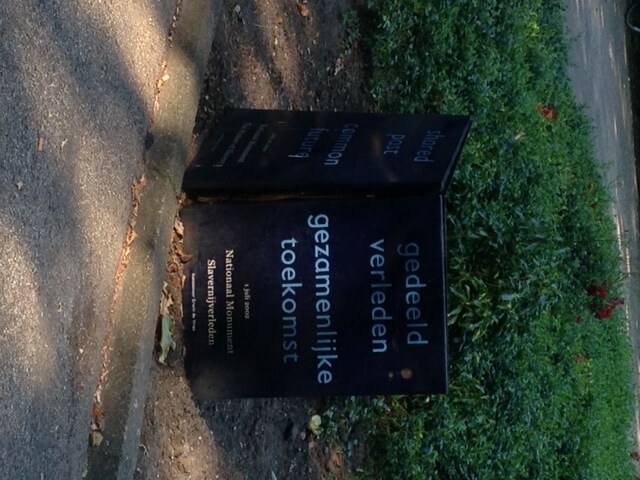 Een dag voor de herdenken hield de Keti Koti Tafel (verbroken ketenen) een vierentwintig uur durende dialoogestafette naast het slavernijmonument in het Amsterdamse Oosterpark. Ieder uur werd er een Keti Koti-ritueel uitgevoerd waarin een zwarte en een blanke Nederlander elkaars polsen inwreven met kokosolie, op kwasibita kauwden (een bitter stukje hout wat symbool staat voor slavernij) en de mond spoelden met een klontje rietsuiker. Onder leiding van organisator Mercedes Zandwijken voerde ik een dialoog met cabaretier Jeffrey Spalburg. We vertelden elkaar over onze voorvaders, om zo door middel van een persoonlijk verhaal, ons eigen slavernijverleden te traceren.