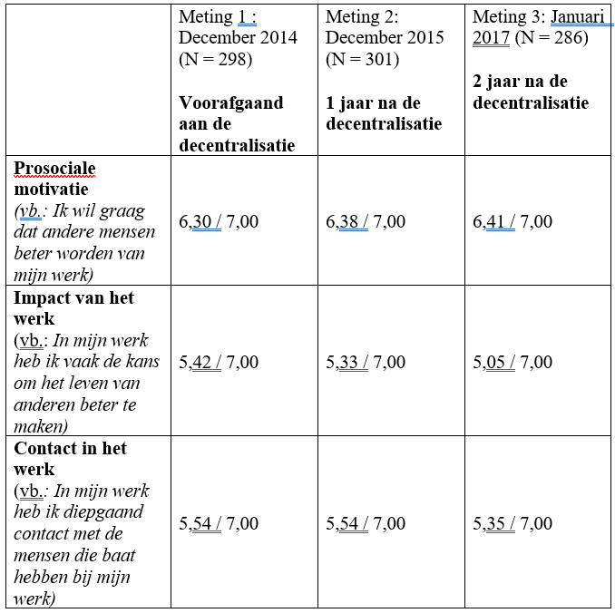 Met name de ervaren mogelijkheden die het werk biedt om anderen echt te helpen, zijn na de decentralisatie afgenomen. Voor prosociaal gemotiveerde professionals biedt het werk in de jeugdzorg daarmee minder mogelijkheden om voldoening in het werk te vinden.