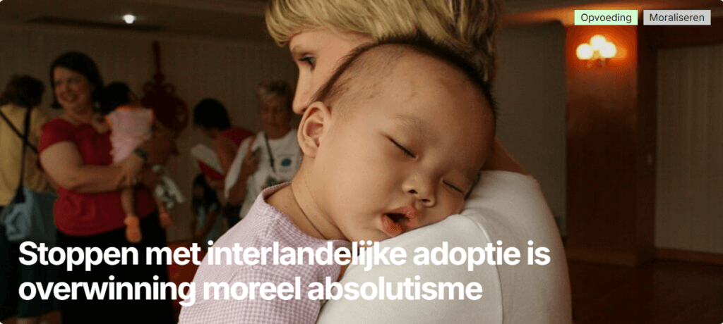 Tegenstanders van interlandelijke adoptie streven naar morele zuiverheid. Als je interlandelijke adoptie verbiedt kan er ook nooit wat fout gaan. Filosoof Anders Schinkel verwijt de tegenstanders simplisme, dat ten koste gaat van kwetsbare kinderen.