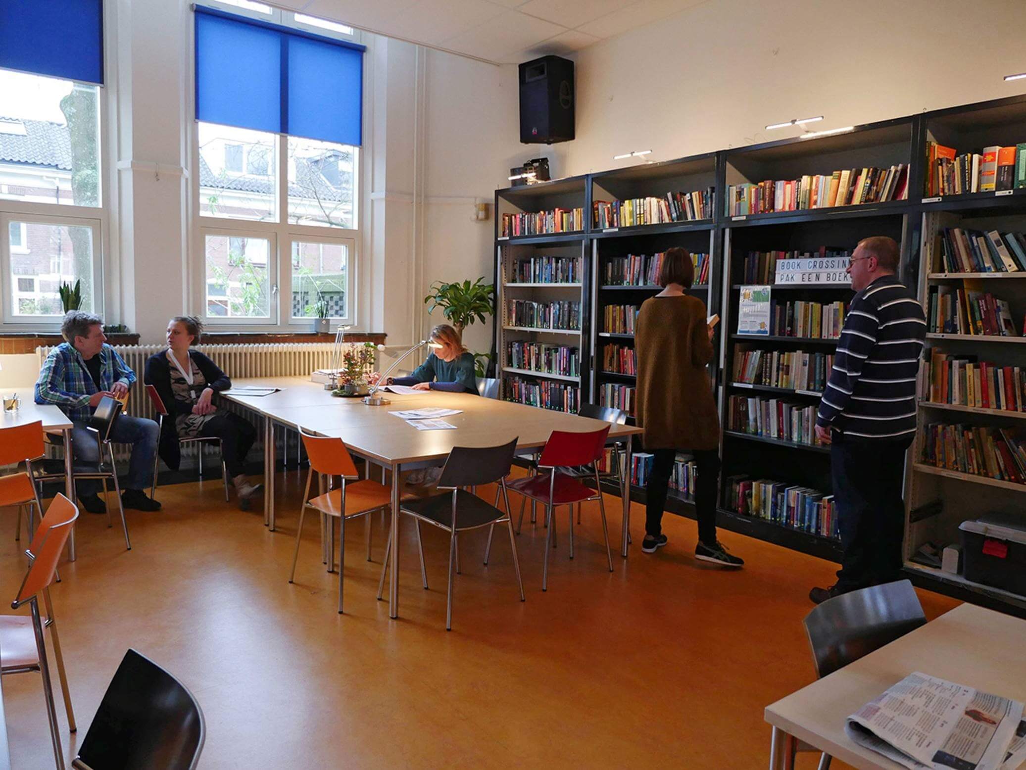 Het team dat beschikbaar is voor de wijkcontactdagen is zeven fte groot, voor 5500 klanten. De klanten die actief willen worden, dragen ze over aan het buurtteam. Die is hier ook aanwezig, in een andere ruimte.