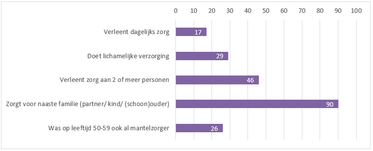 Figuur 2. Mantelzorgervaringen onder oudere werknemers (leeftijd 60-65) die ten minste wekelijks mantelzorg verlenen.